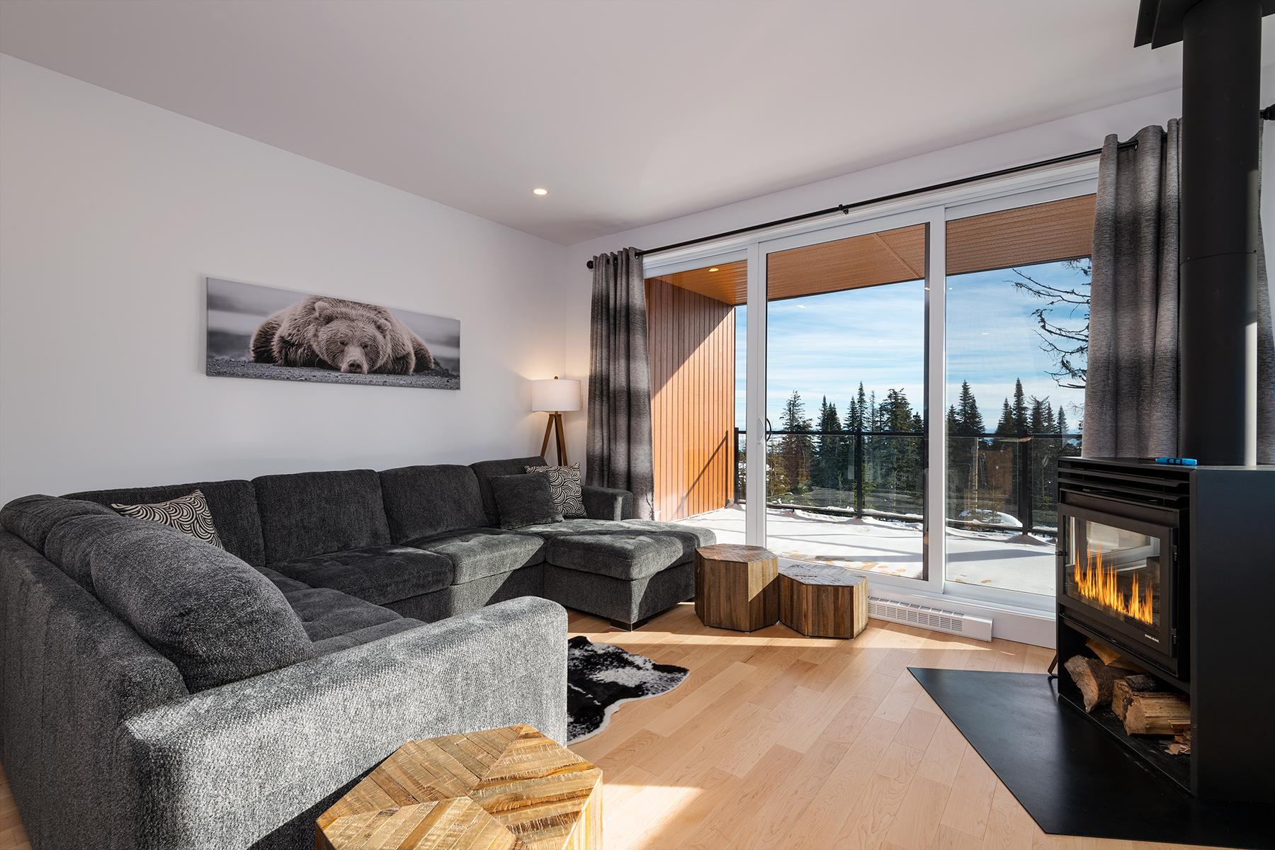 Les Chalets-Forêt sont perchés dans une forêt de conifères surplombant la vallée du Saint-Laurent et offrent une vue imprenable sur le fleuve et sur la montagne. Les chalets se déclinent sur différents niveaux : les pièces de vie au niveau supérieur, ouvrant sur une vue panoramique et les chambres au niveau intermédiaire, offrant des percées visuelles à travers le sous-bois.